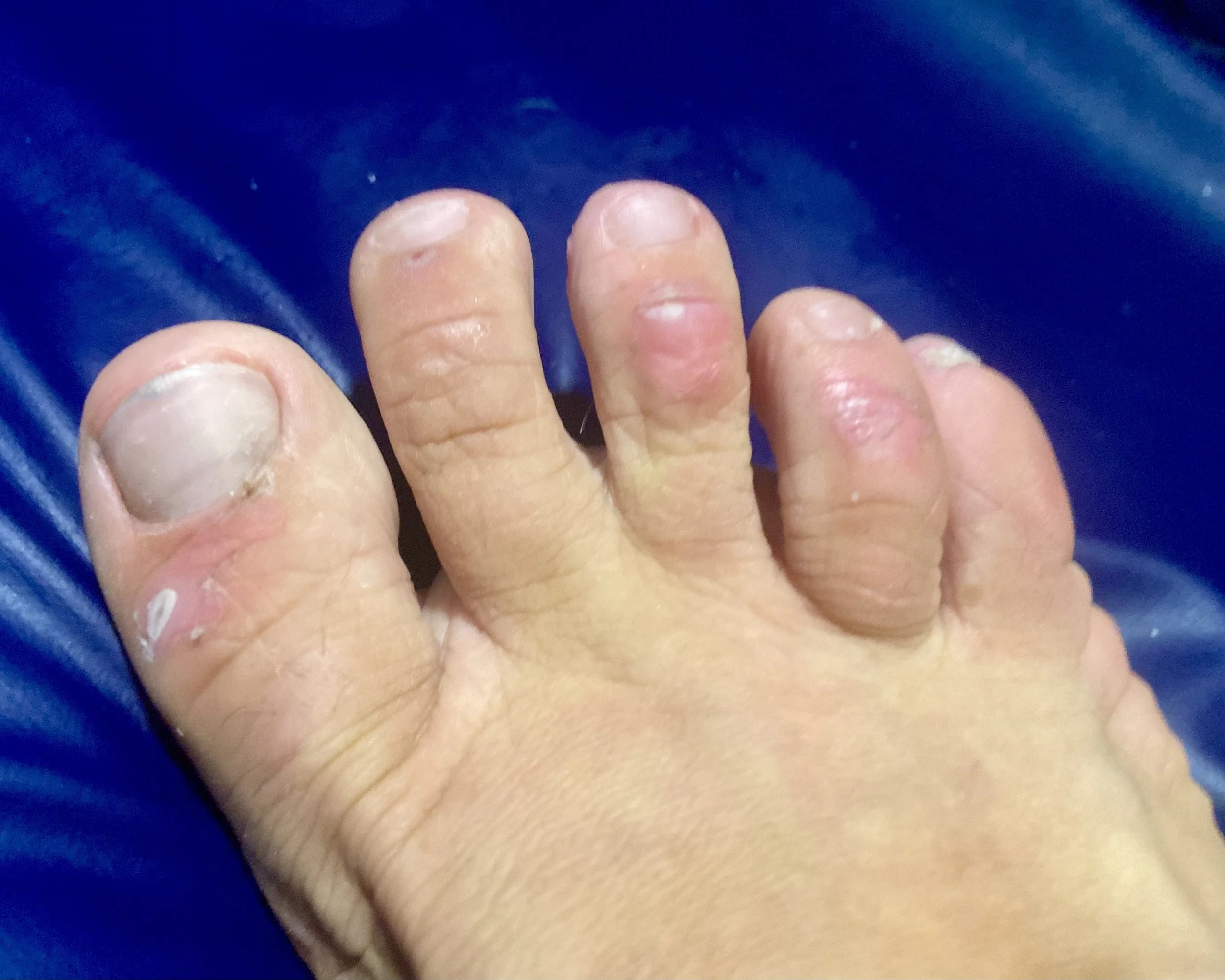 As well as the standard bumps, bruises and blisters, I really struggled with my feet (which I wasn't expecting to be a problem!). The foot plates were too big for me and the skin across the tops of my toes was raw, irritated with every bend of the foot, and my heels were in so much pain i had to pad the heel plate with balled up socks.